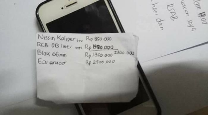 Ketahuan dari secarik kertas yang berisi daftar belanjaan barang untuk modifikasi.