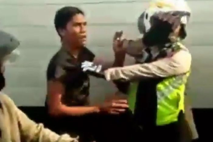 Karena enggak menghiraukan perintah polisi dan kabur, si sopir nyaris menabrak pemotor.