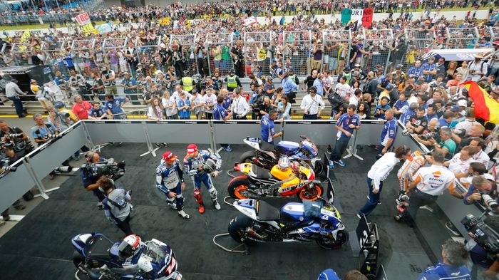 Ini bedanya dengan MotoGP, karena di ajang balap motor itu tidak ada parc ferme seperti F1 ini.