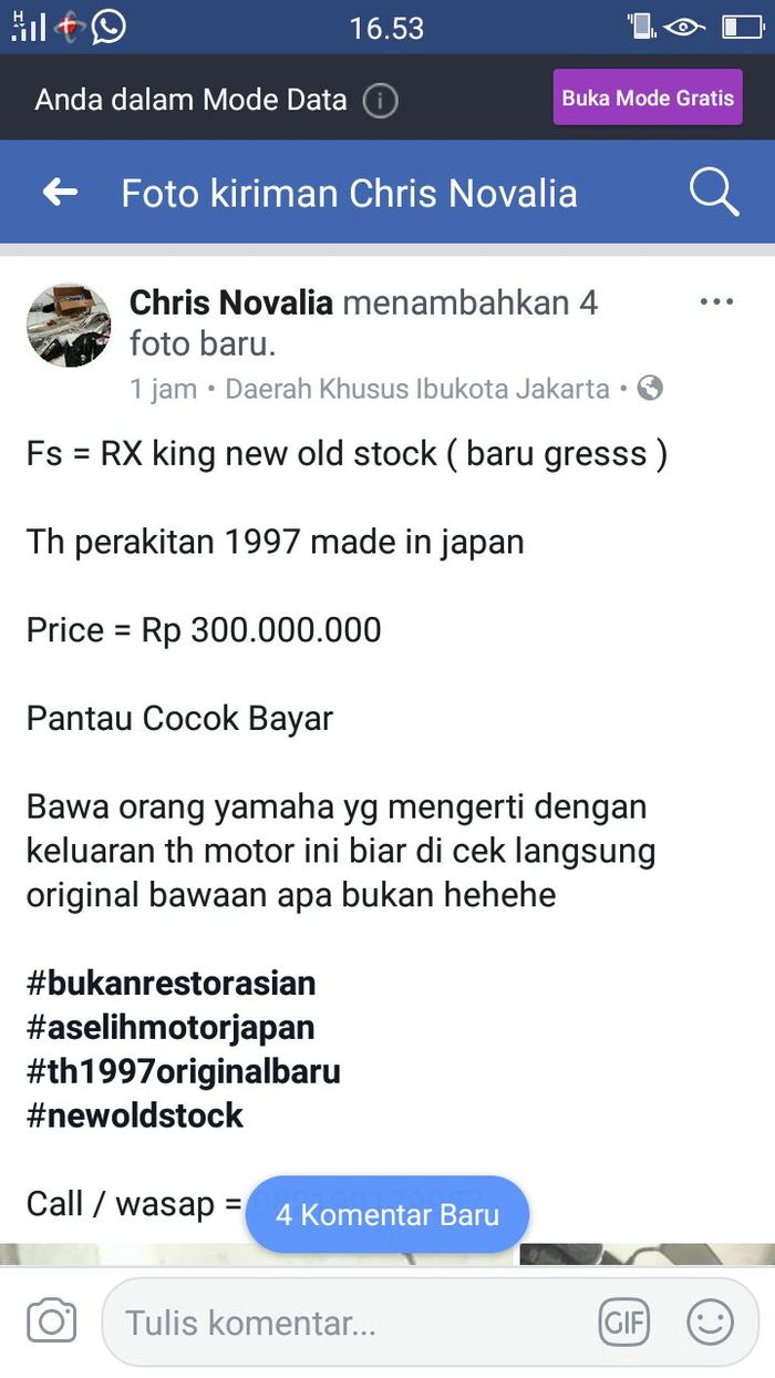 Ia memasang sebuah iklan yang menjual Yamaha RX-King seharga Rp 300 juta!