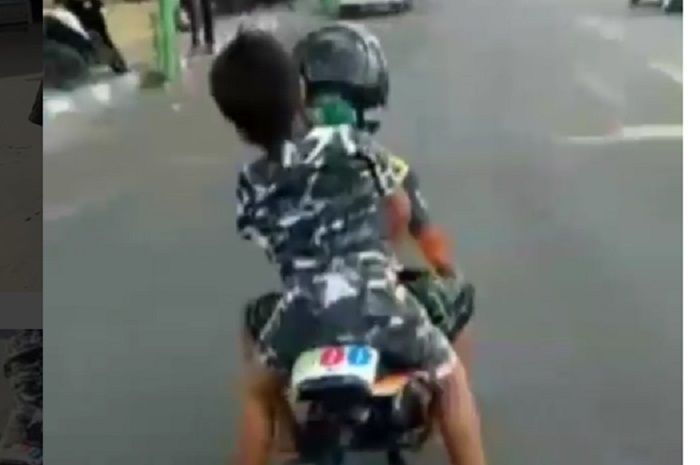 Polisi pasti kasihan melihat si bocah yang nekat naik motor tanpa perlengkapan.