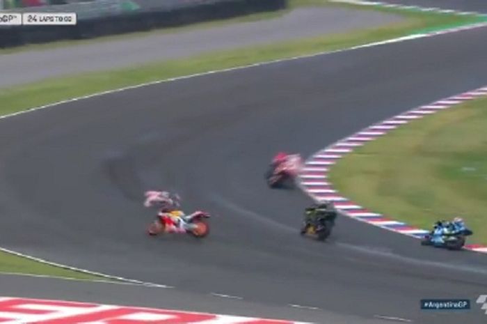 Pembalap Honda Repsol itu mengalami kecelakaan highside yang mengerikan.