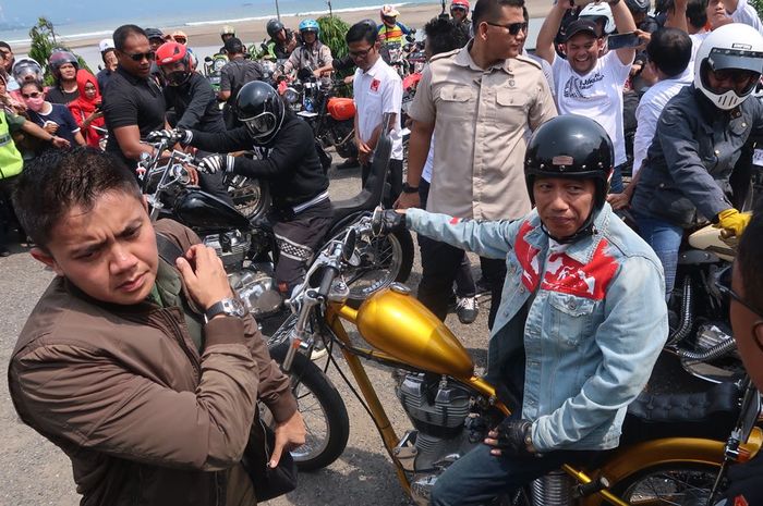 MOTOR Plus-online.com - Presiden Joko Widodo turing dengan motor Chopperland menggunakan riding gear keren.