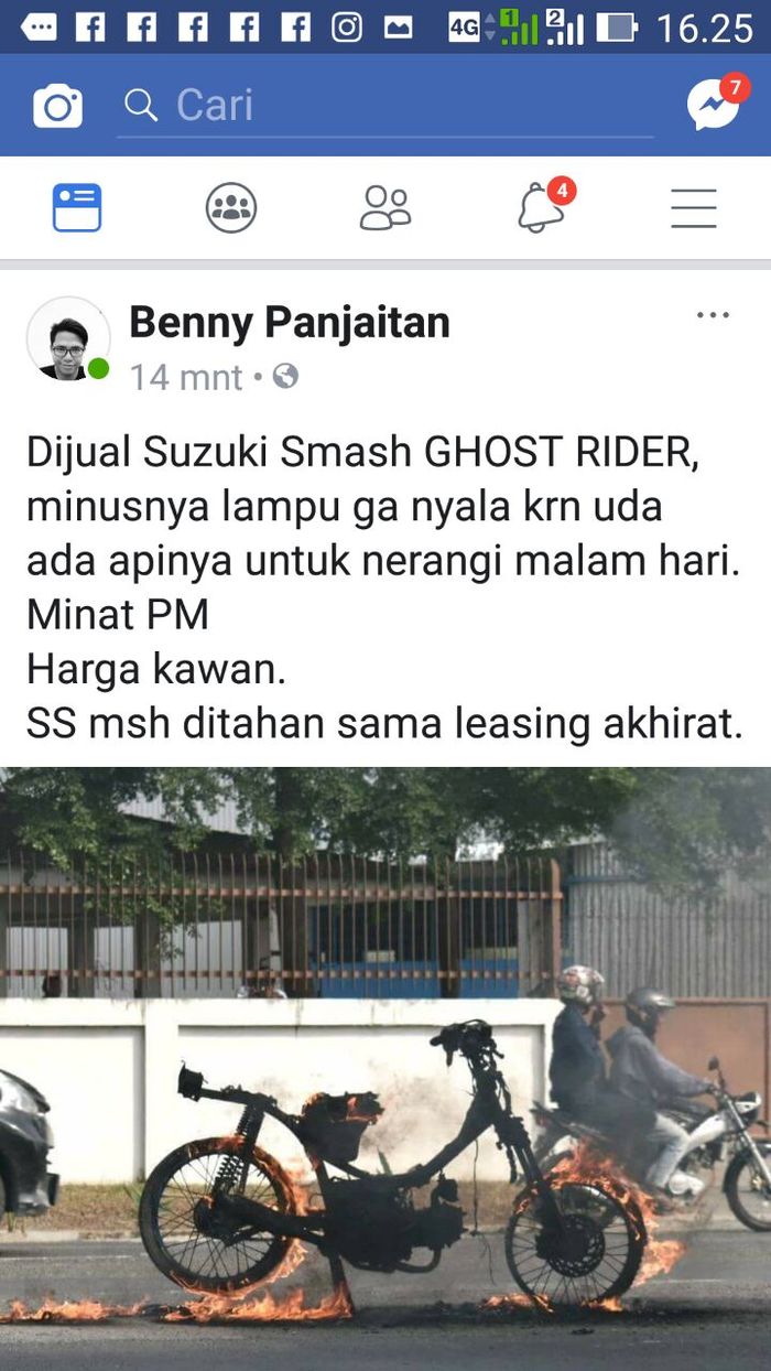 Ternyata foto yang dishare Benny sebuah motor yang terbakar hingga hangus.