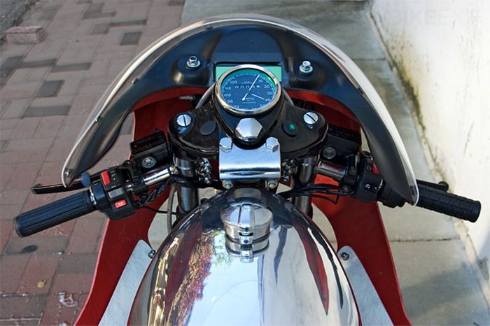 Bodi tersebut merupakan hasil custom, makanya kita enggak akan melihat ciri khas Royal Enfield Bullet kecuali dari rangka belakangnya.