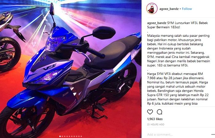 Malaysia diklaim sebagai negara pertama di dunia yang meluncurkan motor bebek super SYM VF3i dengan kapasitas mesin 183 cc.