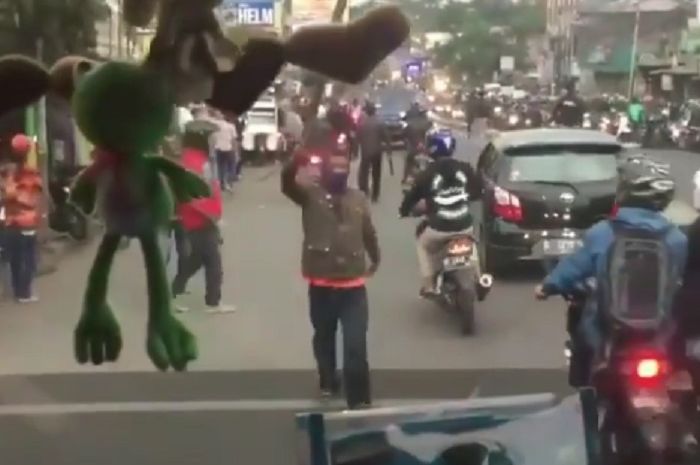 Bahkan seorang pengojek sampai nyaris menghancurkan kaca bus yang melintas.