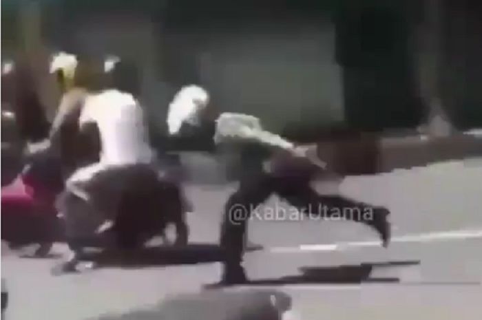 Namun, tiba-tiba ada satu pemotor yang berboncengan melarikan diri.