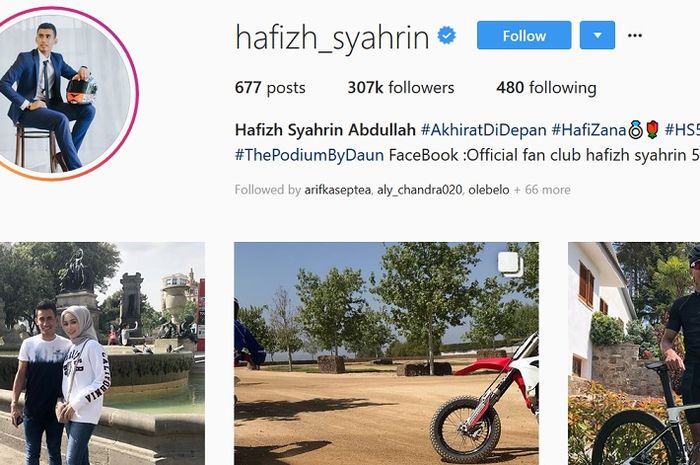Hashtag yang dipakai Hafizh Syahrin dicantumkan di profil akun Instagram miliknya.
