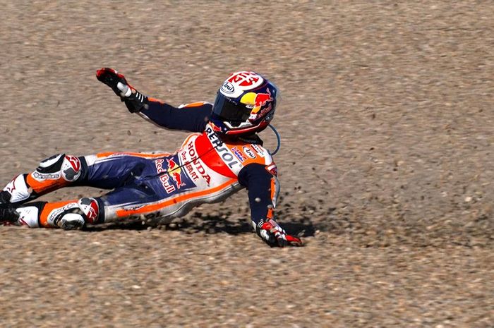 Pembalap Spanyol itu terbang dan terjatuh keras ke aspal usai tabrakan beruntun.