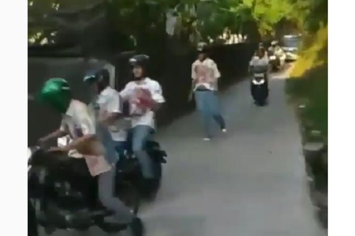 Dalam video tampak segerombolan siswa SMA yang menggunakan motor kocar-kacir di gang sempit.