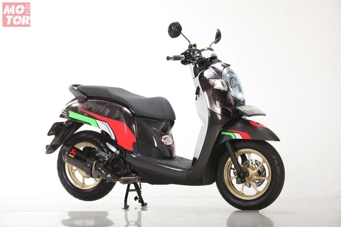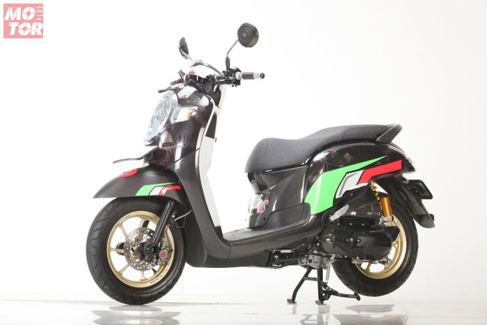 MOTOR Plus-online.com - Honda Scoopy milik Mr. R dengan dengan tema helm Nolan replica Marco Melandri yang dituangkan pada bodi ini asli keren banget.