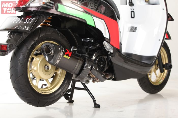 Selain itu beberapa bodi pun dilapis carbon dari Kabon Parts yang membuat Scoopy ini menjadi terlihat lebih elegan.