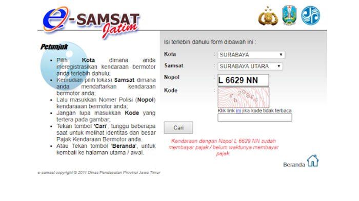 Melalui situs esamsat.jatimprov.go.id, TribunJatim.com menemukan hasil berikut: