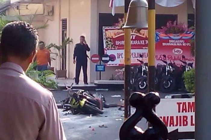 MOTOR Plus-online.com - Pelaku peledakan bom bunuh diri di Mapolrestabes Surabaya, Senin (14/5/2018) menggunakan dua unit motor.