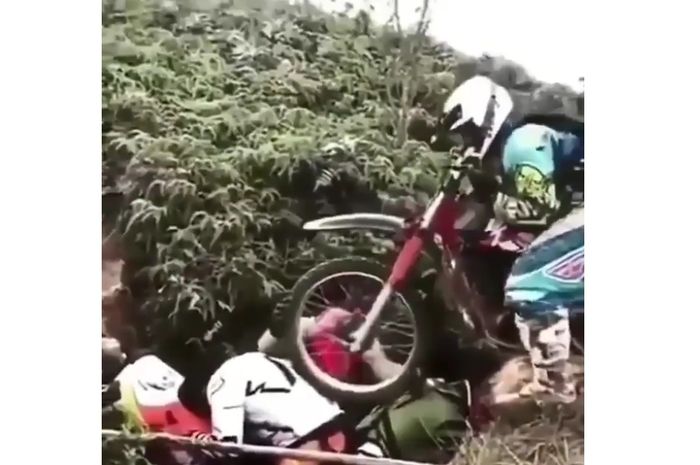 MOTOR Plus-online.com - Sama seperti naik gunung, bermain adventure pakai motor trail harus kompak dan saling tolong menolong.