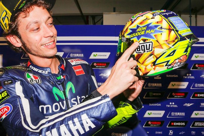 Seperti biasa, Valentino Rossi bakal pakai helm spesial.