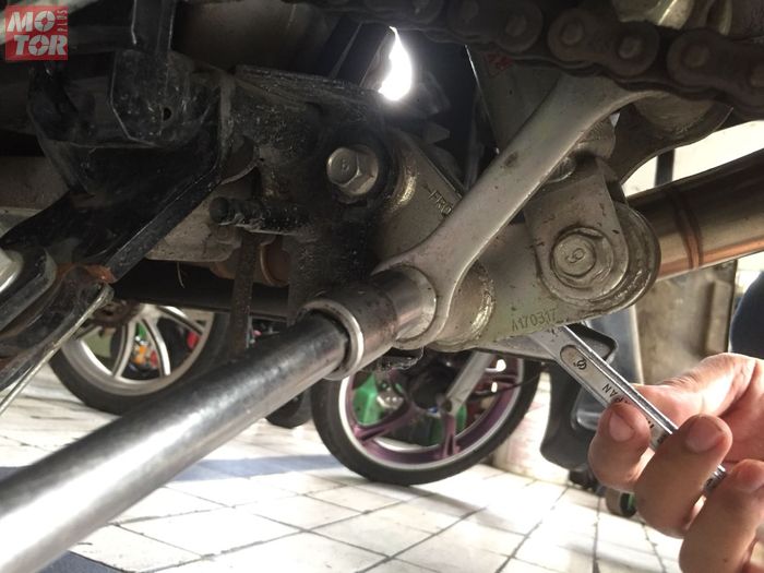Enggak lama, satu komponen lowering kit GSX-R150 pun ia tebus dengan harga sekitar Rp 130 ribu.