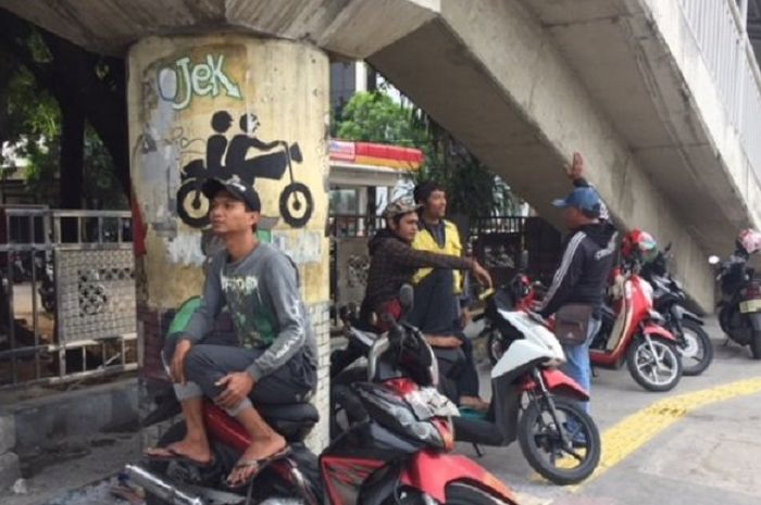 MOTOR Plus-online.com - Pada era serba online saat ini masih ada pengemudi ojek pangkalan yang menunjukan eksistensinya.