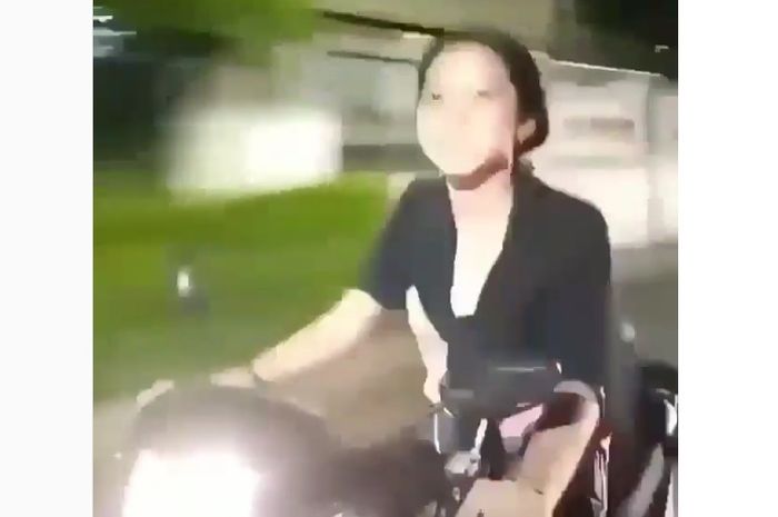 Dalam video tampak wanita muda cantik ini mengobrol dan bercanda dengan temannya yang menggunakan motor lain.