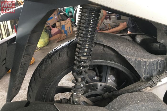 "Kalau aftermarketnya masih susah, bisa pakai sok belakang bawaan Yamaha NMAX. Lumayan lebih pendek 1 cm-an," ucap Kemal.