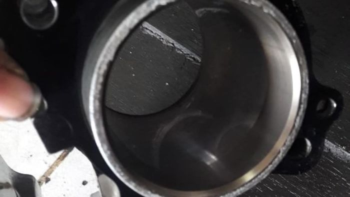 Bagian yang lecet membuat oli mesin masuk ke ruang bakar, yang membuat knalpot jadi mengeluarkan asap karena oli juga ikut terbakar.