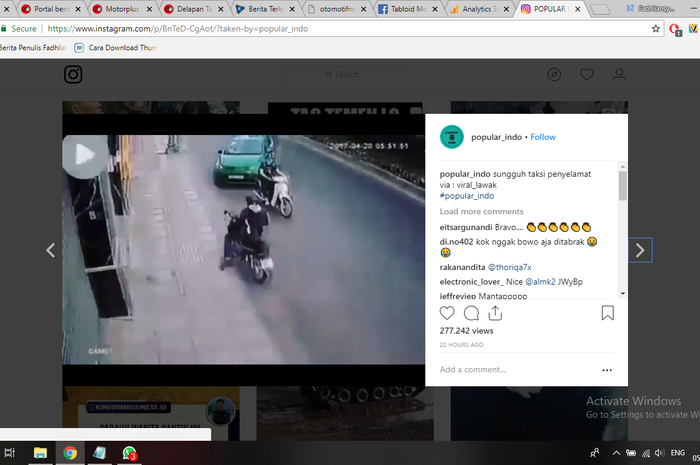 Video yang diupload di akun Instagram @popular_indo ini merekam kejadian saat seorang penjambret mengambil tas seorang perempuan yang sedang berjalan kaki di jalan raya.