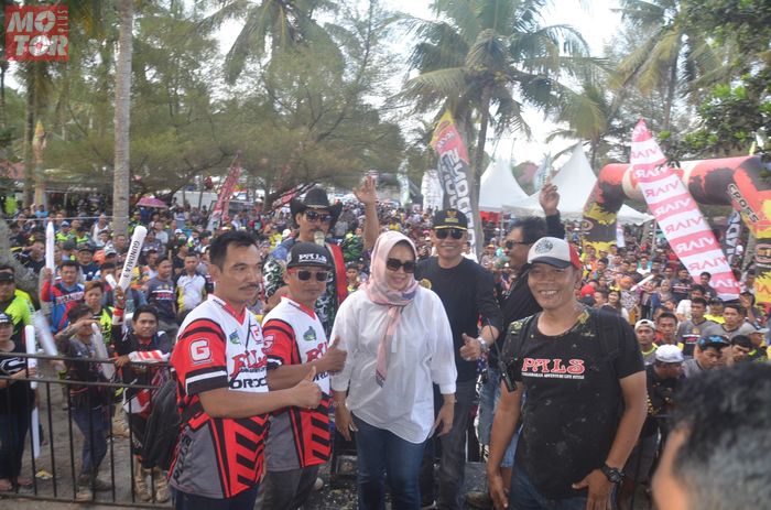 Ibu Bupati yang sederhana serta memiliki nilai social tinggi berbaur dengan para offroader yang telah sampai di garis finish.