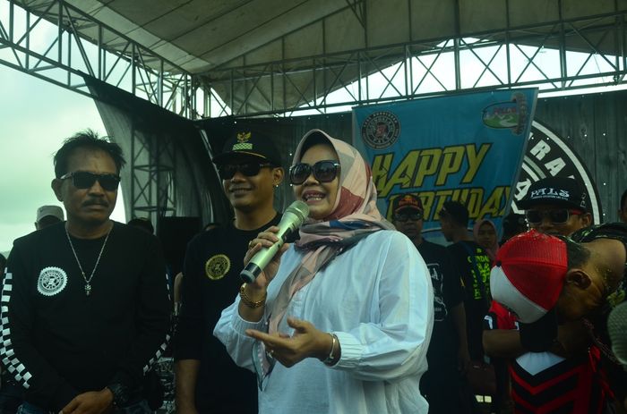 Dan setelah melakukan pengundian, ibu bupati yang pintar menyanyi ini turut menghibur peserta adventure.