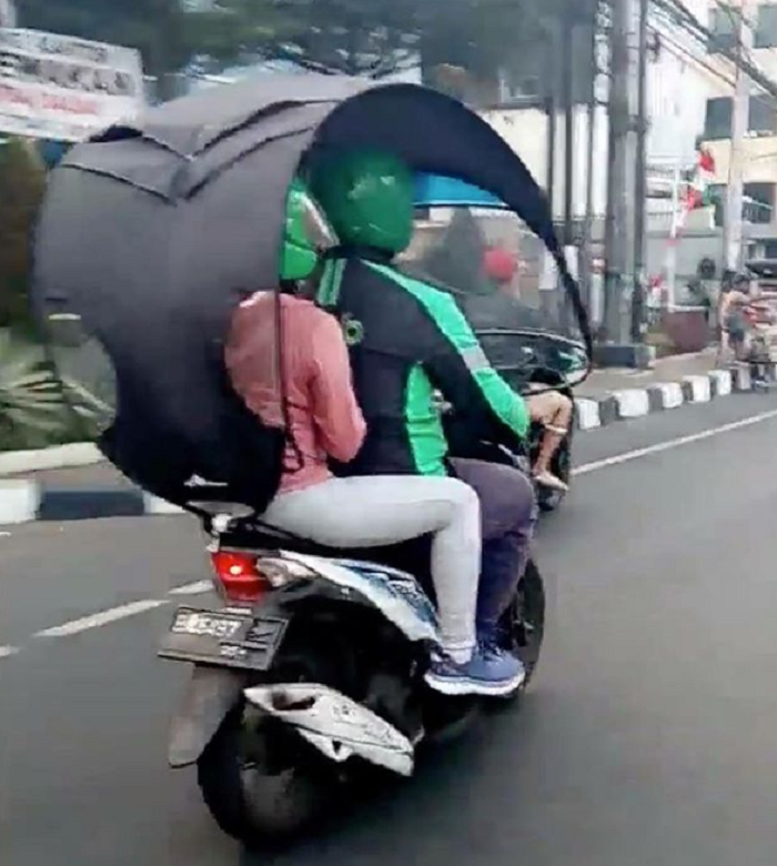 Jadi kalau kamu termasuk setuju atau enggak dengan penggunaan payung khusus motor tersebut?