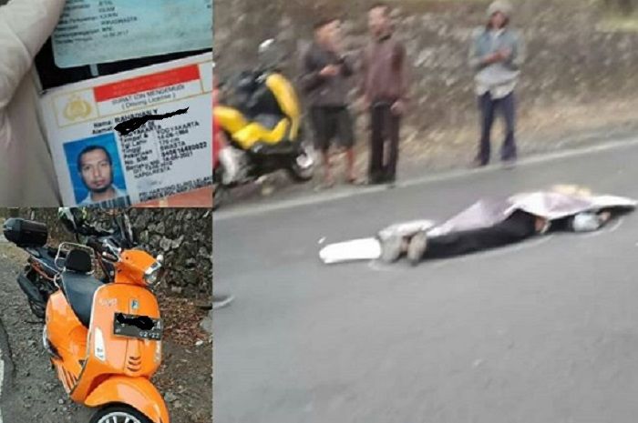 Vespa oranye no pol AB 4860 EA enggak mengalami kerusakan.