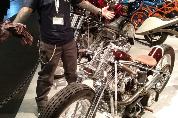 Lalu Koh Sakaguchi kembali melanjutkan komentarnya pada motor Harley-Davidson Panhead karya Veroland tersebut.