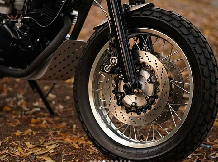 Selain itu sebuah skid plat juga terpasang untuk melindungi mesin saat W175 tracker ini diajak main tanah.