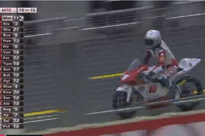 Mario Suryo Aji termasuk pembalap yang enggak melanjutkan balapan usai mengalami crash.