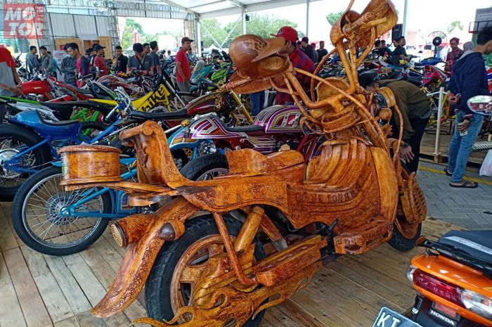 Namun dari ratusan peserta yang ikut HMC 2018 seri Solo, ada yang nyeleneh. Ada motor yang dibuat dari kayu. Tapi, ikut kontes.