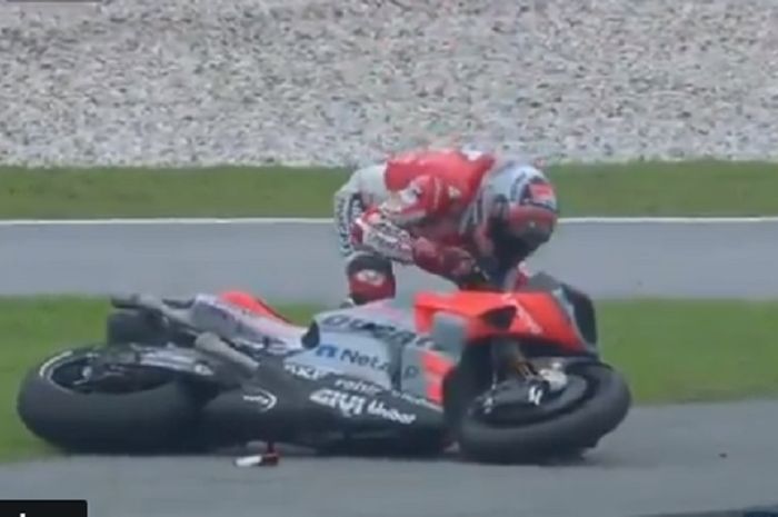 Akibatnya, pembalap Ducati itu kembali tersungkur dan lengan kirinya cedera.