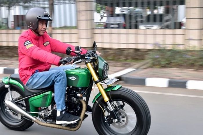 Naik motor custom, kira-kira Presiden Jokowi ngebut enggak ya bawa motornya?