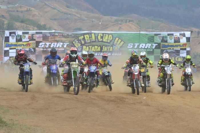 Otomatis jarak pandang selepas garis start langsung menghalangi para pembalap grasstrack yang bertarung di tiap kelasnya.