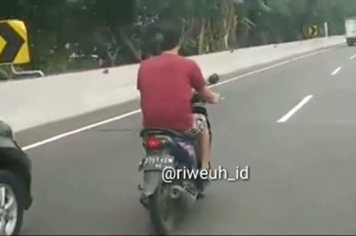 MOTOR Plus-online.com - Belum lama ini beredar sebuah video yang berisi seorang pengendara motor melintas di jalan tol.