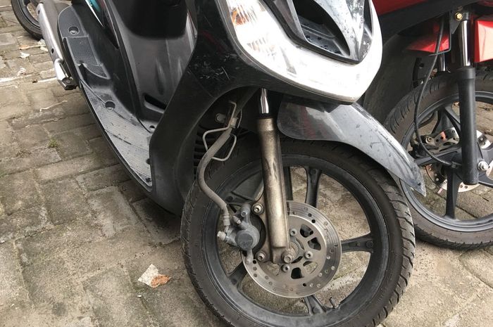 Penyebab kebocoran bisa juga dari as sokbereker motor bagian depan.