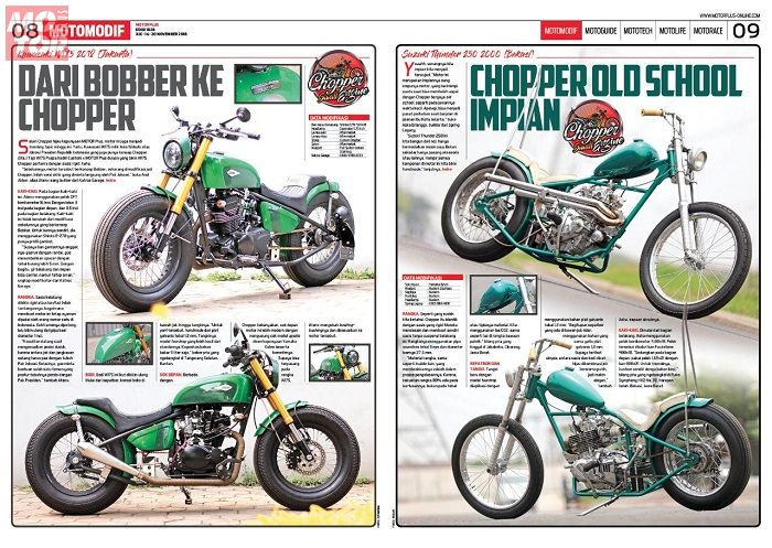 Soalnya, MOTOR Plus kasih ulasan lengkap tentang sejarah chopper dan juga workshop yang terbiasa membangun motor dengan konsep yang sedang tren itu.