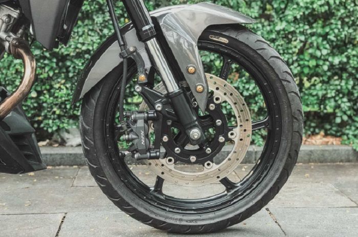 Biar makin kekar, garpu depan upside down milik R15 menjadi ganti garpu aslinya.