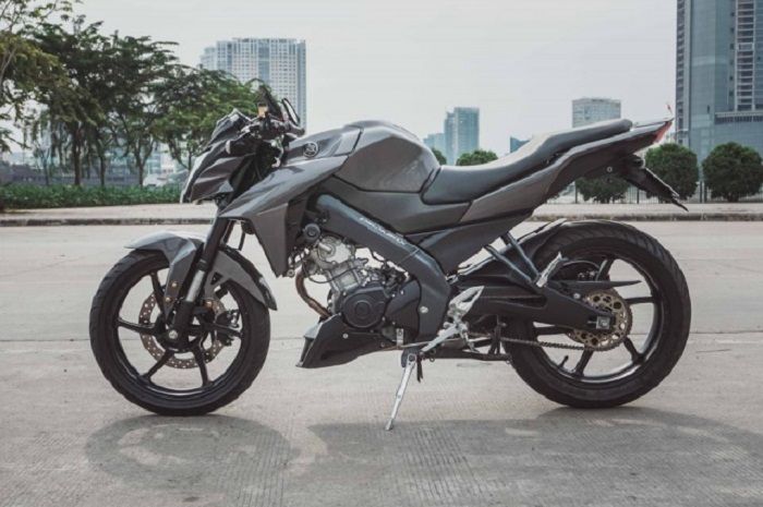 Lihat saja nih modifikasi FZ150 yang satu ini, pakai kelir hitam keabu-abuan berhasil memberikan kesan sangar dan sporty.