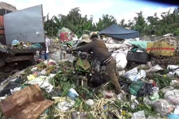 Berdasar unggahan di sebuah akun sosial media, motor tersebut sengaja dibuang di TPA karena parkir sembarangan.