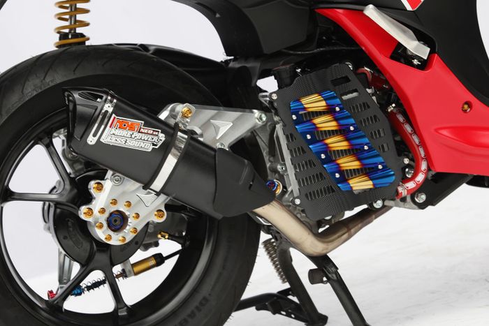 Pelek itu lantas dibungkus ban Pirelli Diablo Rosso. Sementara untuk knalpot diganti keluaran NOB1.