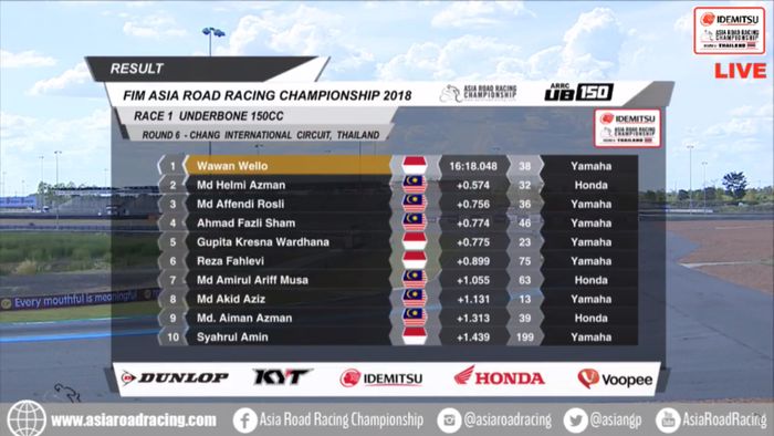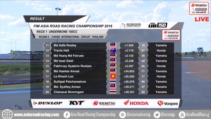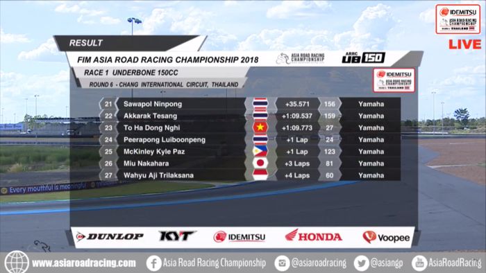 Berikut hasil lengkap ARRC Thailand kelas UB150.