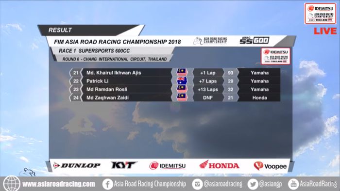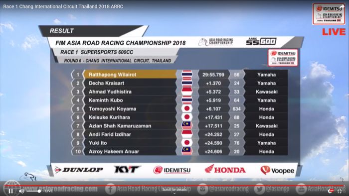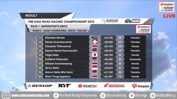 Berikut hasil race 1 kelas SS600 ARRC Thailand.