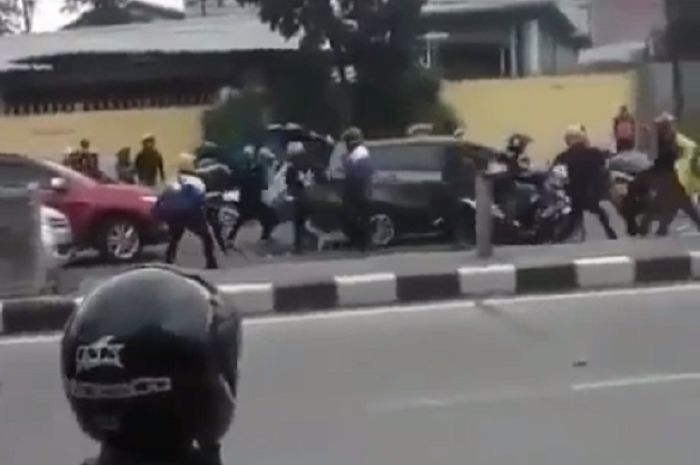 Terjadi bentrokan antar club motor di Jalan Kebon Kopi, Cimahi Selatan, Bandung Jawa Barat.