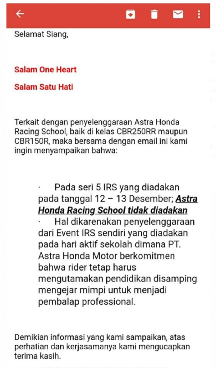 Itu artinya, Astra Honda Motor selaku penyelenggara dari HRS lebih mengutamakan pendidikan disamping balap.