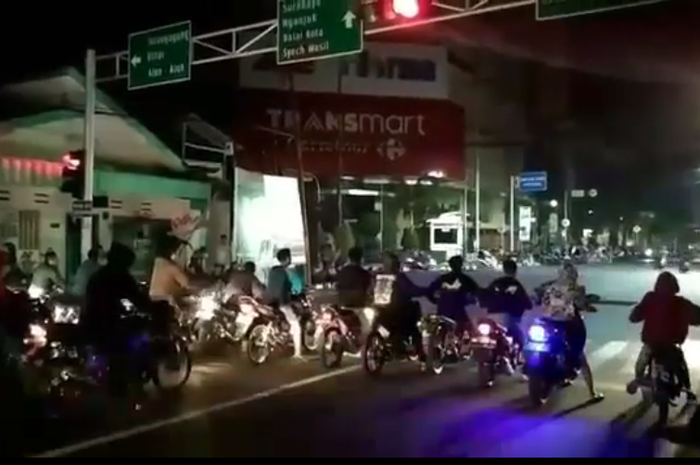 Terlihat dalam video segerombolan pembalap liar sedang bersiap di sebuah simpang empat.